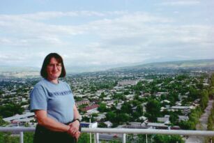 Our training sessions were held in the 3000+ year old town of Osh, which is at the eastern end of the Ferghana Valley along the Silk Road. (Colleague Spee Braun on Suliman Mountain overlooking Osh.) 25 women attended from 4 locations on our third meeting. The sponsoring Kyrgyzstani organization, Foundation for Tolerance International (FTI) had, as usual, organized everything seamlessly. (Photo: FTI's Raya Kadyrova and Anara Eginalieva with other group members.) The groups had been going full tilt since we last worked with their leaders at the University of Delaware in January 2001. They'd some lively new women members and had tackled exciting projects. One group monitored the local border crossing situation and actually got a few of the more abusive guards fired and crossing rules regularized. Another had a meeting after Sept 11 about terrorism that attracted 400 attenders from their mountainous rural region. Other groups are getting women the legal information they need about domestic violence, and all the groups are sources of good information for communities that have no TV, no radio, no newspapers, no libraries, no internet. This time, against high odds, they'd managed to get a woman from Uzbekistan and 2 women from Tadjikistan These closely-related groups have been cruelly separated by new and arbitrary national boundaries after the USSR was dismantled. Weak economies have caused serious disrepair of infrastructure and an increase in drug smuggling and fundamentalist Islam among unemployed young men. As a result, dormant ethnic differences in the region have heated up. (See ISAR's excellent one-page overview of the Ferghana Valley situation.) The women have found themselves dealing with officials at all levels, and gave full attention to my sessions on negotiation skills and about gender and age dynamics in conflict. We spent significant time discussing men and violence. Almost all warfare and most violence is perpetrated by men--what does that mean for women in their lives and in their organizing work? There was political uproar in Kyrgyzstan the week we were there. Police had killed a number of peaceful demonstrators several weeks before, and in response 10,000 (!) people came to block the one and only mountain pass road between the Ferghana Valley and the capital city to the north. The prime minister and other key officials resigned. The crowd dissipated when rain came.... nonviolent tactics winning for the moment. We spent late nights talking about what the women might do to help the current volatile situation. The final evening was a blow-out party, with toasts, skits, poems, songs, reams of gifts, and delicious dancing. Peacemaking work carried out in well-organized community, with compelling goals, external support, and a good dose of playfulness, is what keeps these strong women going. |